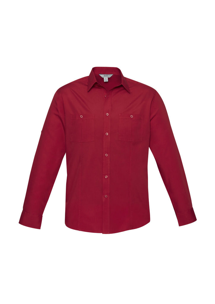 Twin chest pockets with stylish stitching and button detail. Twin back shoulder pleats. Roll-up sleeve function with button and inside tab. Curved hem - can be worn in or out