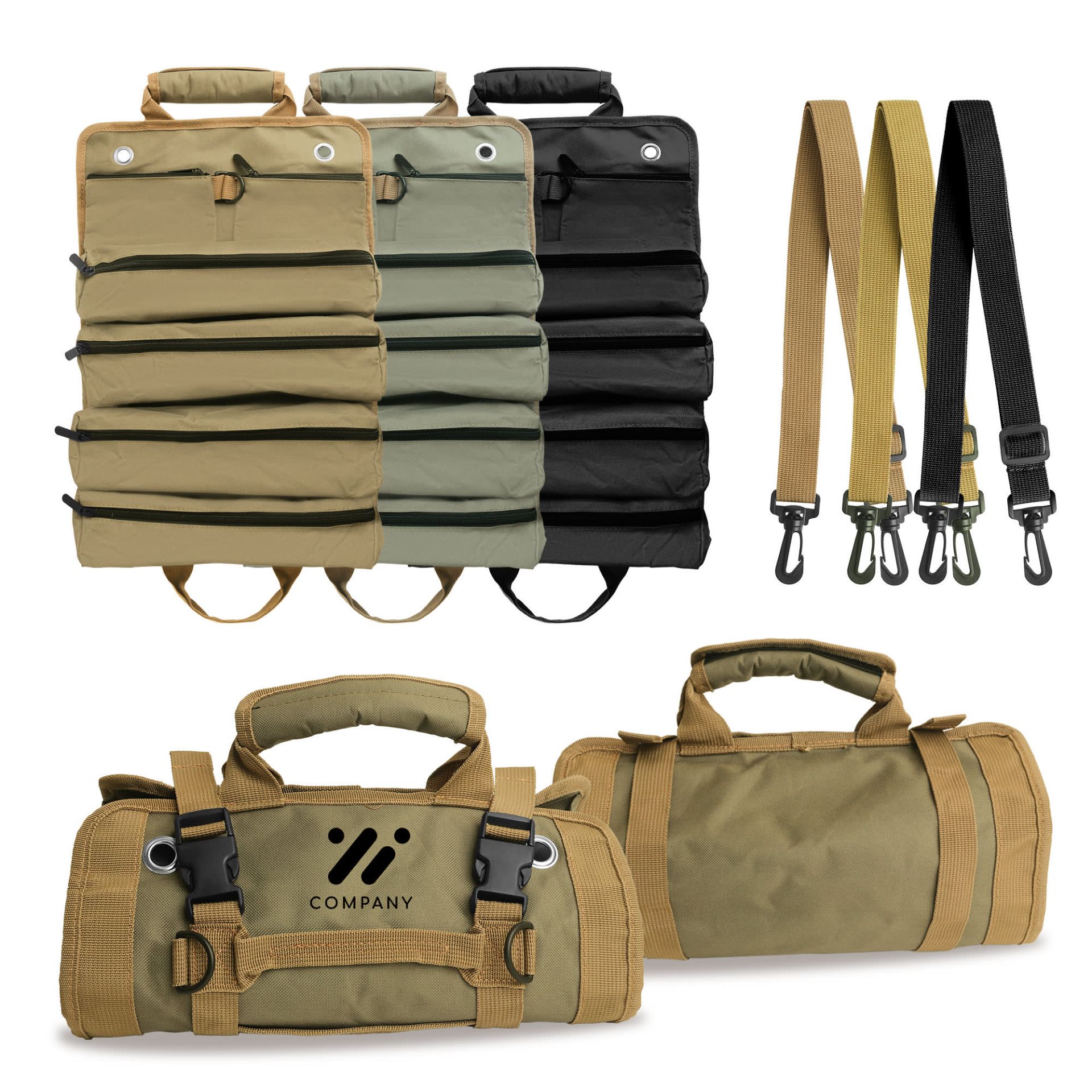 Keep your tools organized with our durable rolling up tool bags!The removable shoulder strap adjusts from 24 cm to 113 cm. Black,khaki and army green to choose from. With 5 zipper pockets, this bag can help keep tools organized and easily accessible. Great for professionals and weekend warriors alike