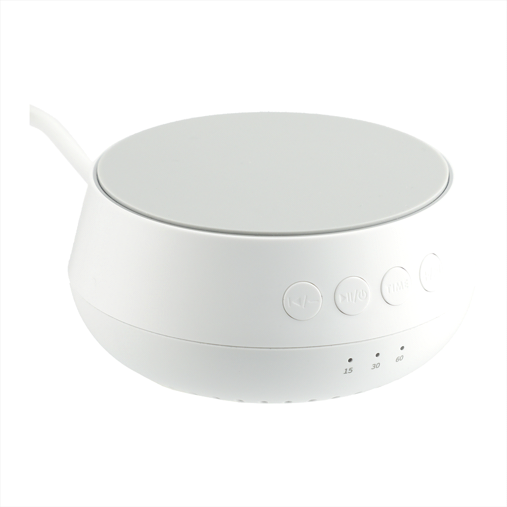 The Sound Machine with Qi 15W Wireless Charger plays 26 different kinds of soothing sounds (including water, birds, train, pendulum, etc.) to help you sleep while it charges your phone. Leave the sound machine on all night or use the optional timer, which can be set for 15, 30 or 60 minutes. Supports three different wireless charging modes: up to 7.5W for iPhone X/8/8 Plus/XS/XS Max/XR/11/11 Pro/11 Pro Max/12/12 Pro/12 Pro Max/12 Mini/13/13 Pro/13 Pro Max/13 Mini; up to 15W for Samsung Galaxy S9/S9 Plus/S8/S8 Plus/Note 8/9 and more, and 5W standard charging for all other enabled devices. It is recommended to use a quick-charge power adapter (not included) for fast charging. Qi-certified. Includes a 39-inch USB-A-to-Type-C charging cable. Packaged in a FSC®-certified premium gift box.